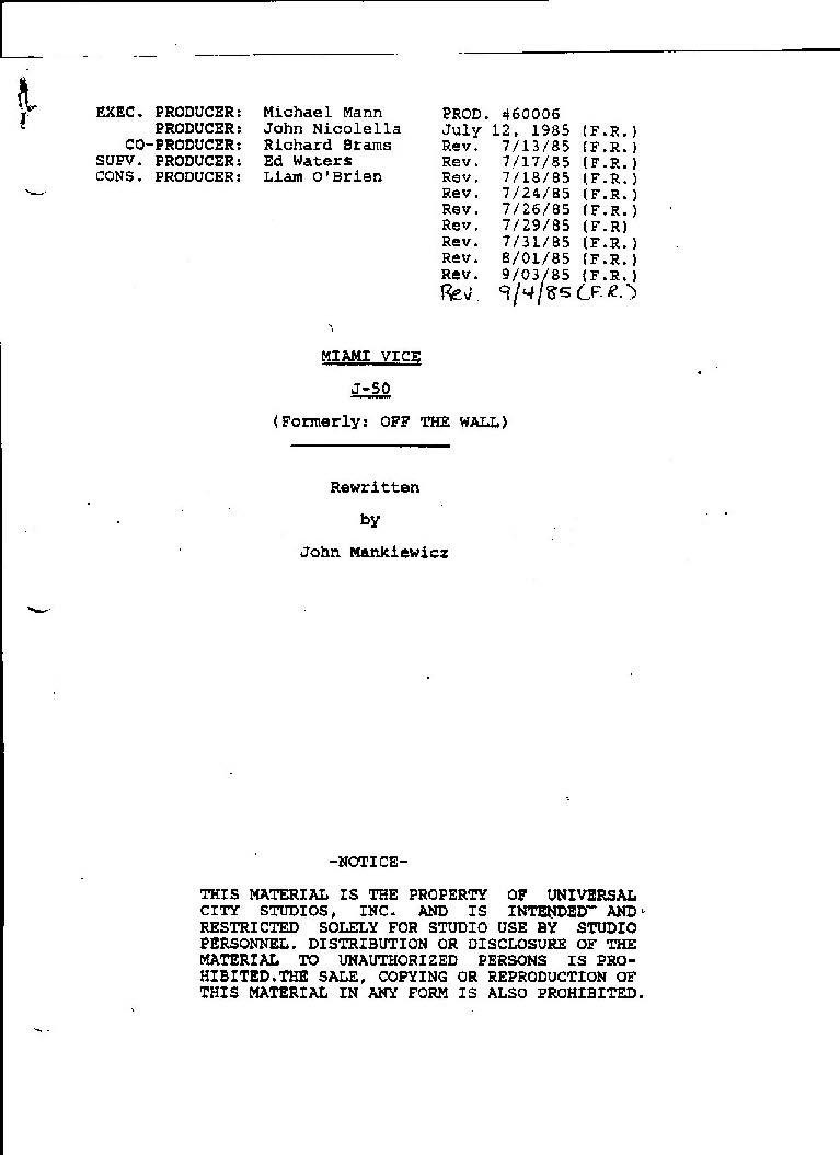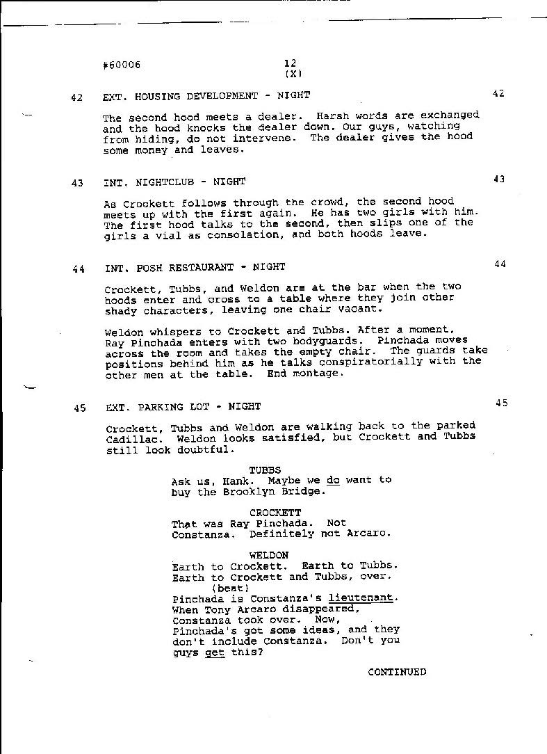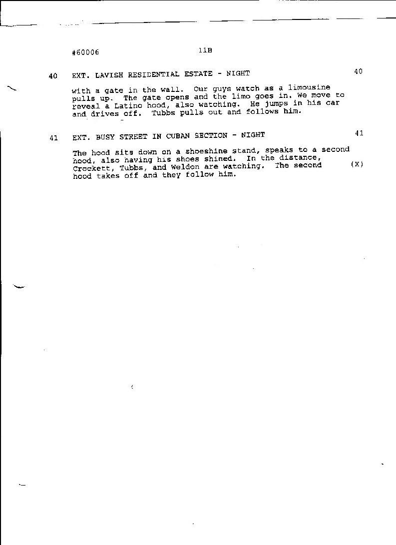 They decided to delete the following scene from the final production. I believe that was a mistake because I think it was important to the mood of the story and it helped develop the story. It also seems like a classic Miami Vice montage. I would love to see the footage that was cut.