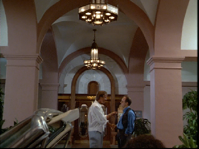 From there, Stan and Tubbs go to a south beach looking hotel to follow a lead. I have not confirmed it yet but I am 90+% sure that this was filmed at the Carlyle Hotel on the second floor. The hotel has undergone significant renovations since filming so I will need someone familiar with the filming to confirm the location. Even with the upgrades the floor plan matches as does the view out the window. Stan and Tubbs are seen approaching from the west, rear of the hotel and walk toward the front of the hotel. Harold’s room, #200 is at the south east corner of the second floor.