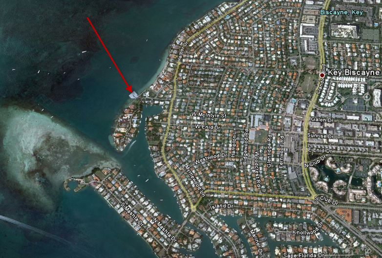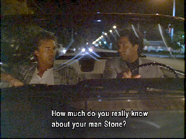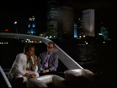 Then we see Crockett in his boat with Stone just off shore at the mouth of the Miami