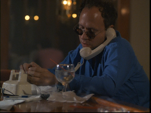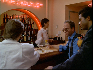 Then it cuts downstairs to the Carlyle’s Bar. There we see Stone talking to Dakotah on the phone to arrange a purchase.