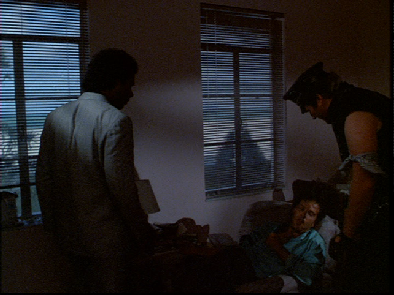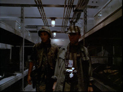 Then we go inside the ship. Stone shows Crockett some drugs being shipped in the body bags of dead soldiers. This was most likely filmed on set at Greenwich Studios but I have not yet confirmed this. Location unknown.