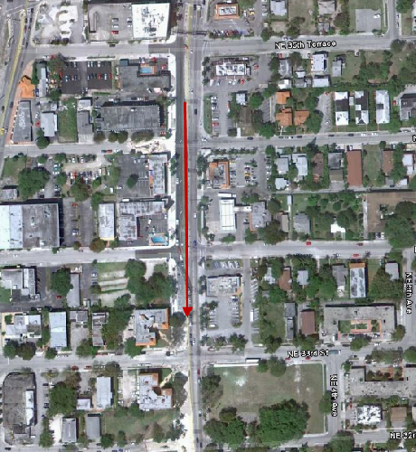 Then Tubbs and Crockett hit the road at night. They drive southbound on U.S. 1/Biscayne Blvd. from just south of the McDonald’s at NE 35th Terrace down to the Wendy’s at NE 33rd Street. As they drive we see them pass the Motel where Tubb’s stayed in the Pilot, Brother’s Keeper.