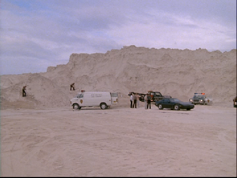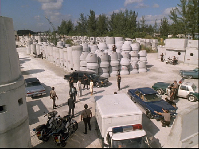 The episode starts out at an aggregate quarry. We see a black Porsche speed down a dirt road into a back area of the quarry where he approaches a black Corvette only to be killed. He is then buried in his car. This was filmed at Tarmac now Titan America Cement, in Medley Florida. The bridge you see in the background is the Florida Turnpike.