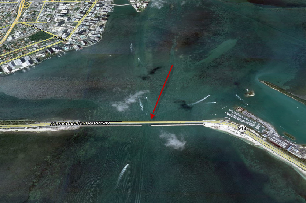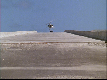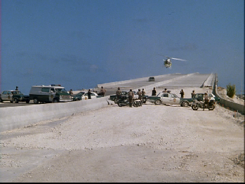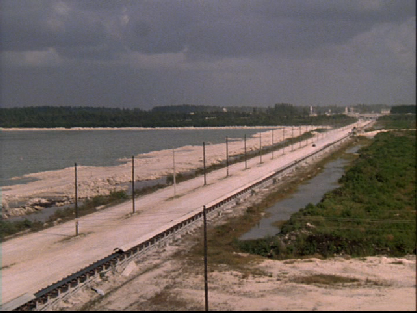 Next we see them driving with Agent Dalva toward Key Biscayne on Virginia Key passing the marine stadium.