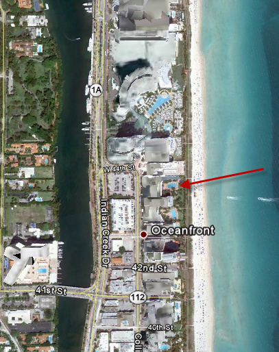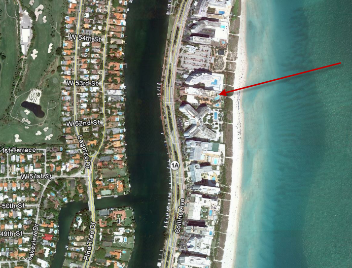 Then we see Crockett walk Callie up the beach and into a safe house on the beach. This was filmed at 7747 Atlantic Way, Miami Beach. This house has either had a major addition placed on it or was torn down and replaced with a new beach house since Vice filmed here.