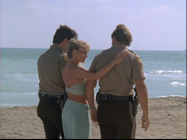 Then we see Crockett return to the beach where Callie is playing in the sand. She is taken into custody but her days of playing men are clearly not over. Not enough is seen to say for sure exactly where this was filmed on the beach.