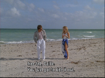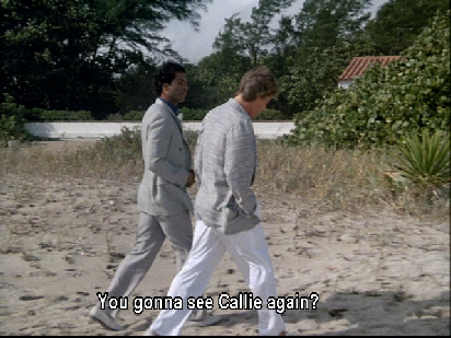 Then we see Crockett and Tubbs talking on the beach just north of the Blue Waters from the episode, The Maze.