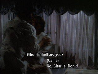 Then we go to Callie’s hotel room, #960. By the look of it this was probably a set at Greenwich Studios but it also may have been at the Alexander Hotel based on the the door locks and the windows. Location unknown.