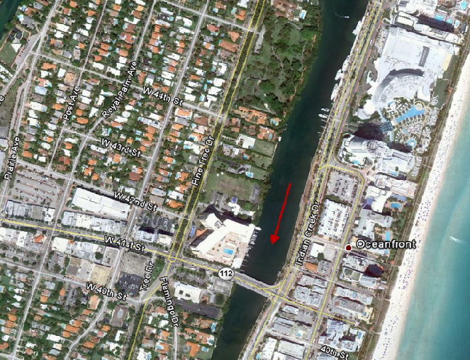 Crockett and Tubbs are seen running along side the chase headed south on Indian Creek Dr. passing 36th Street.