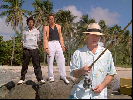 Next we see Crockett and Tubbs walking along a beach on Rum Key looking for Thurmond. This was really filmed on Virginia Key.