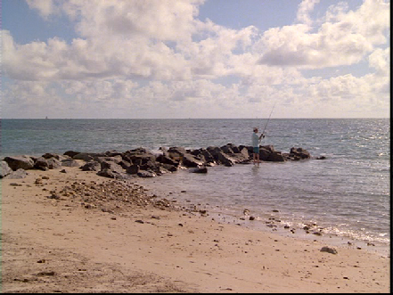 After walking around Rum Key 3 times Crockett finally spots Thurmond fishing on a jetty.