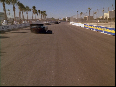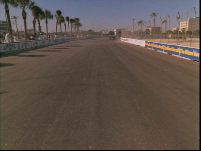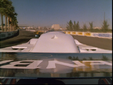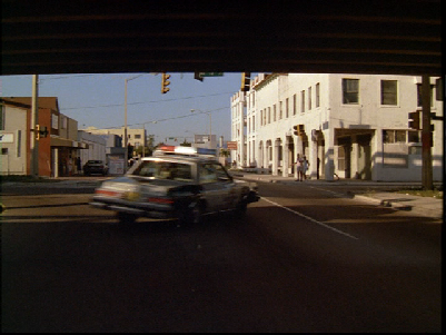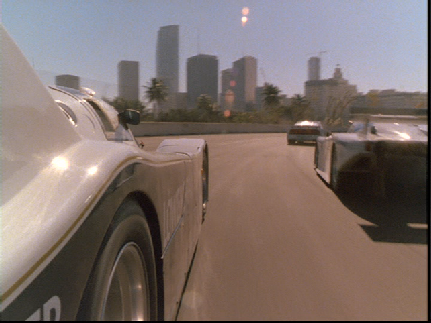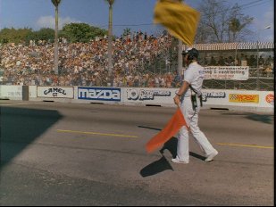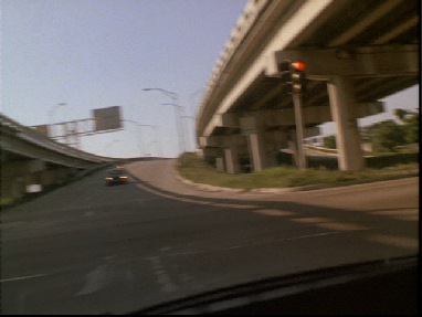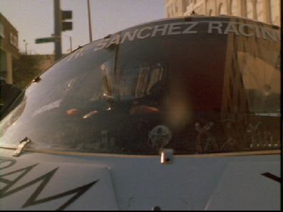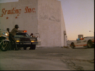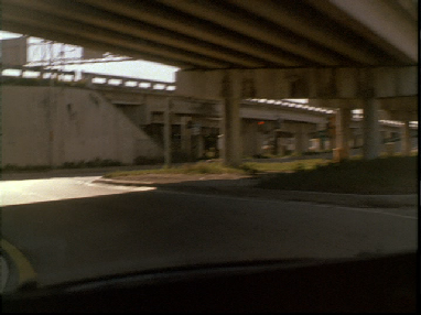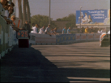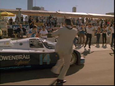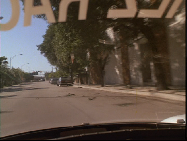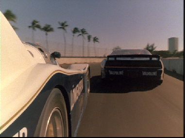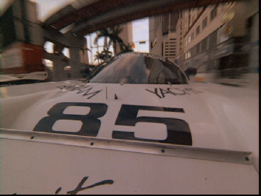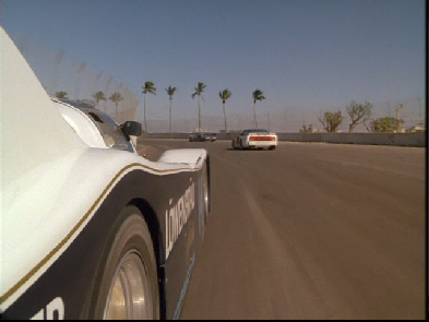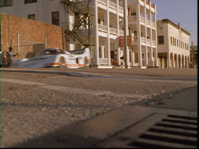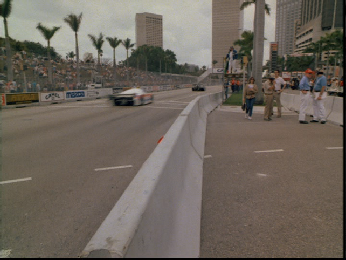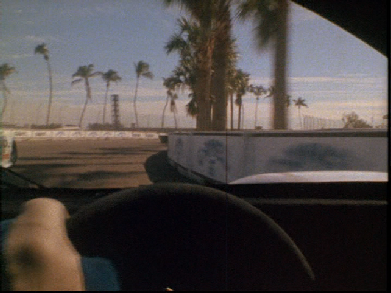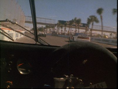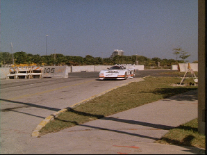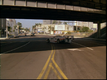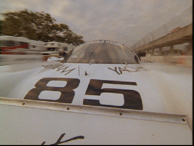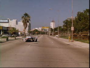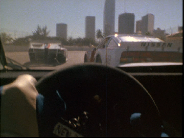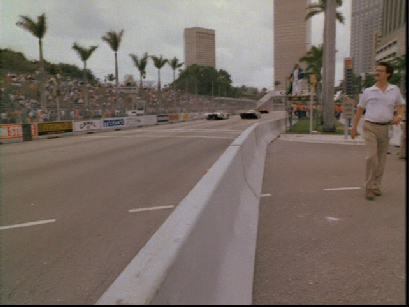 Then just before he crashes into the wall it cuts to a view facing the car to show Frank. This was shot back on NE 2nd Ave. at the Royal Castle no where near the crash.