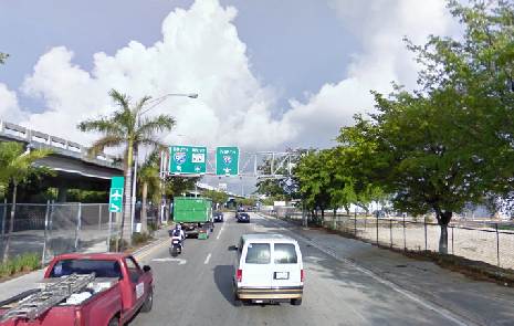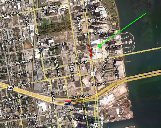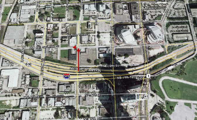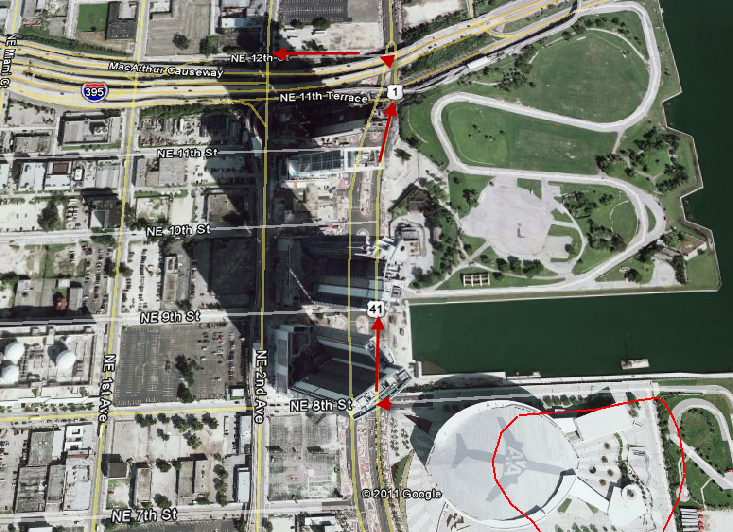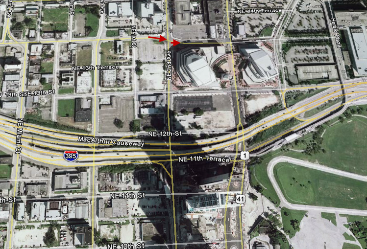 Then Frank cuts back under 395 and heads north on NE 1st Ave.