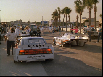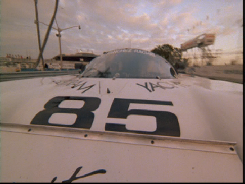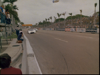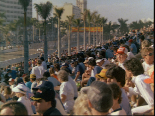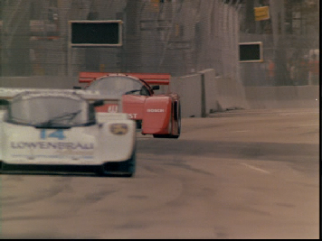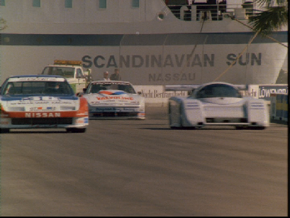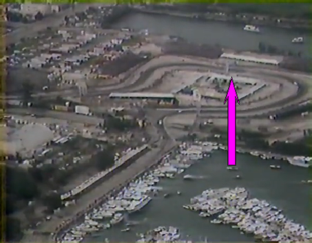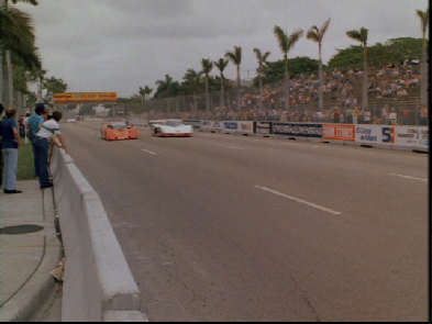 Then we see the 85 car enter turn 12 with the freedom tower and Crockett’s Bayside Marina in the background. As he makes the nearly hairpin turn we see Reflections on the Bay, now the Hard Rock Cafe in the background. This was also seen in the movie Absence of Malice.