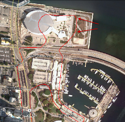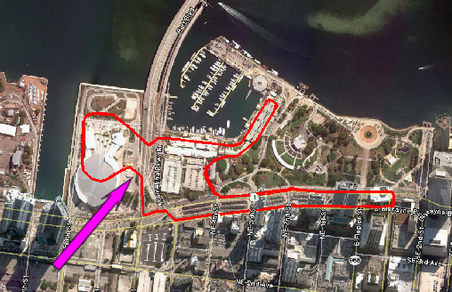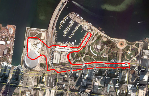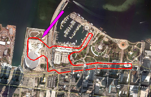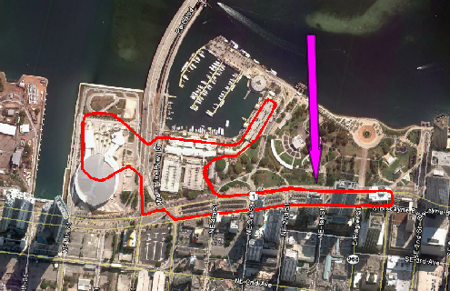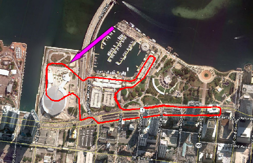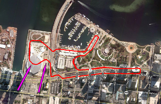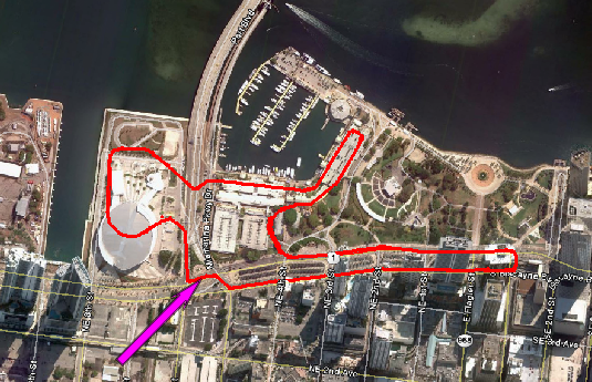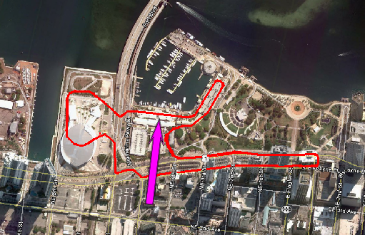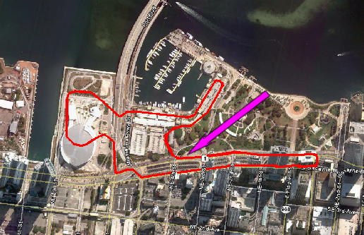 Then to pit row. Between NE 2nd and NE 3rd Streets in the middle of Biscayne Blvd.