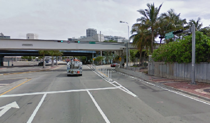 Then back to the middle of Biscayne Blvd. southbound straight away. Biscayne and NE 2nd Street.