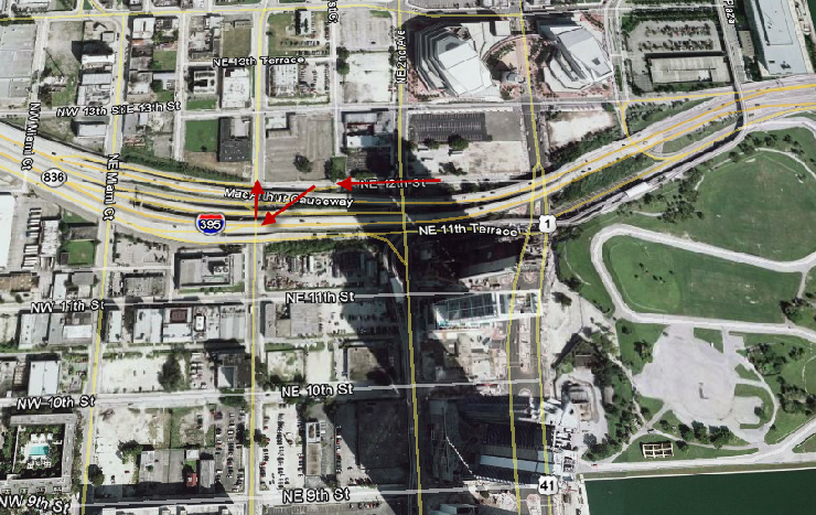 They continue north on Biscayne Blvd., go under 395 and immediately turn left (west) onto NE 12th Street.