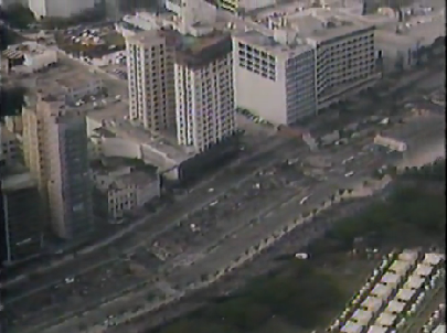 Then we cut back to the race where we see cars northbound up the southbound lanes of Biscayne Blvd, passing under the metrorail at NE 1st Street.