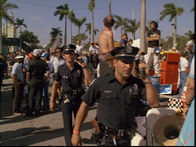 Then we see two uniformed officers getting the word as they walk south along Biscayne Blvd. in the pit area.