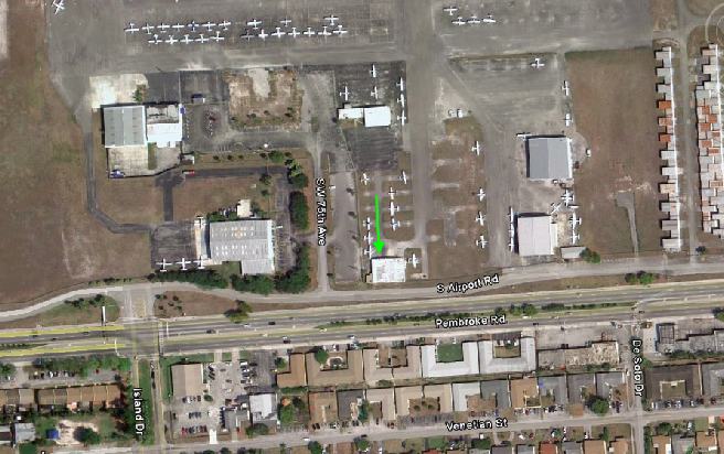Crockett and Tubbs are able to talk their way into finding out who the pilot is and where he can be found. This leads us up to Broward County. To North Perry Airport. They pull up to an airplane hangar at 7501 Pembroke Road in Pembroke Pines, Florida.