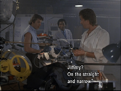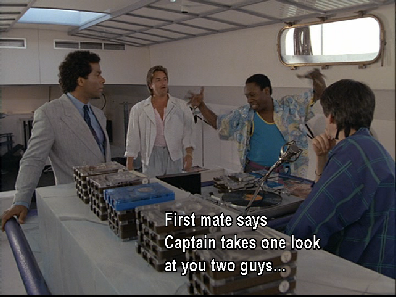 We see Crockett and Tubbs make some headway with the pilot before we cut back to Jumbo’s at Aviation Propellers.