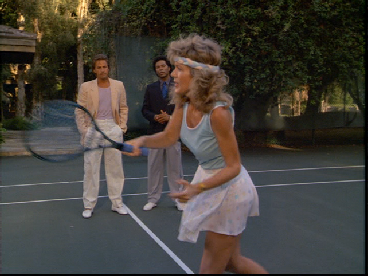 From there we go to Maynard’s house where Crockett and Tubbs learn from Mrs. Maynard that Maynard is in the Keys. The tennis court she is on is not at Maynard’s house, but next door.