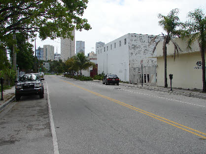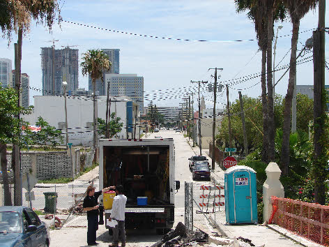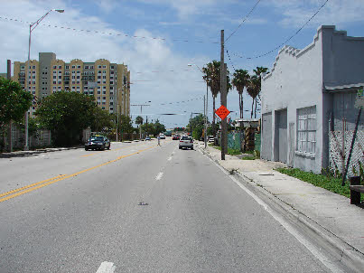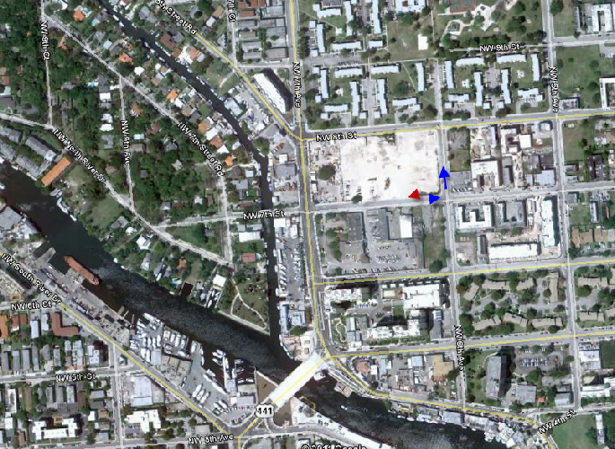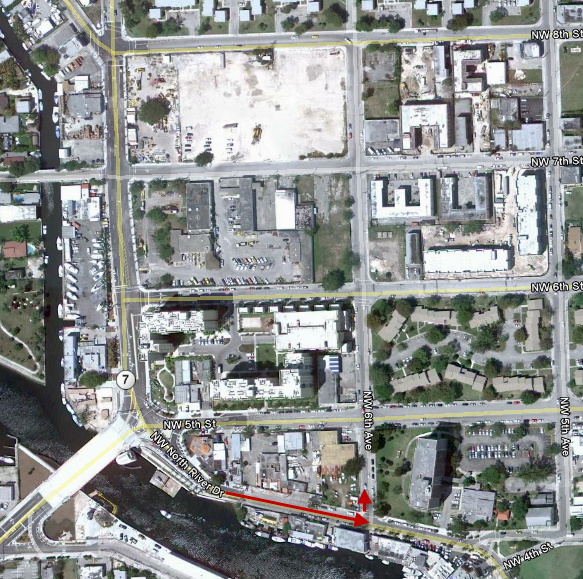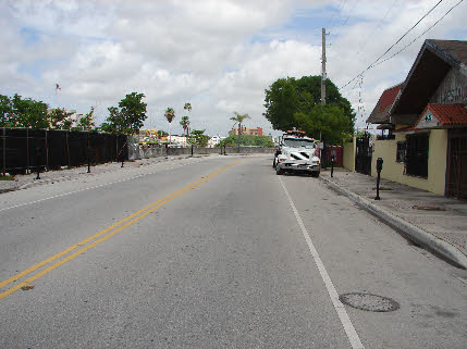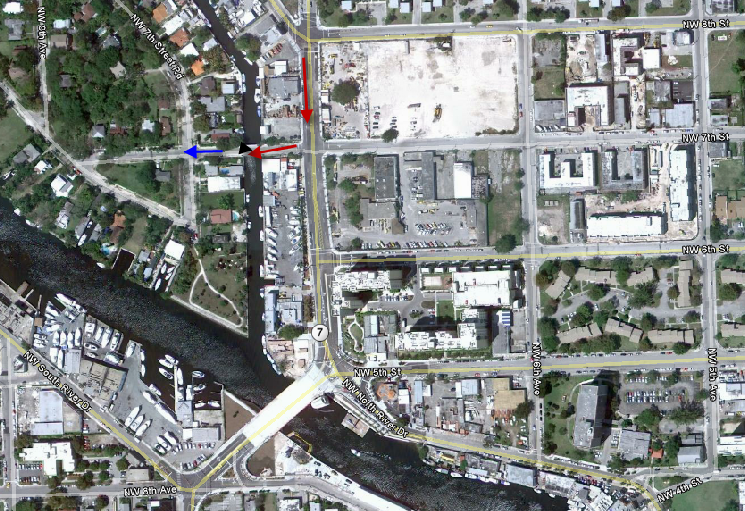 Then we see them southbound on NW 7th Ave toward NW 7th Street. Instead of turning left which would bring them back to the warehouse, they turn right (westbound) and go over a bridge. This leads them into what is now Madeline Westen’s neighborhood in the USA Network’s show, Burn Notice.
