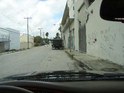 They drive by the camera and turn left (northbound) onto NW 6th Ave. Back toward the warehouse.