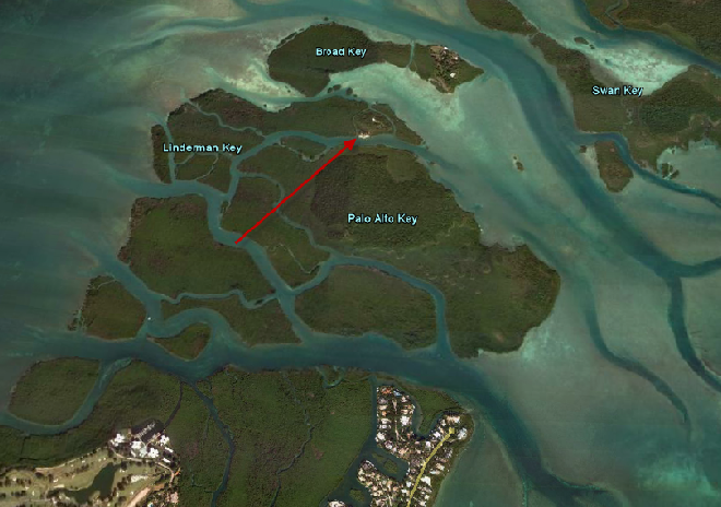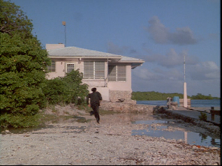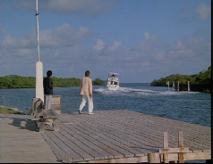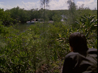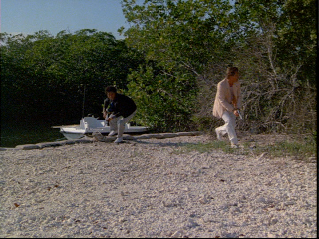 Then we see Crocket and Tubbs in a flats boat down in the keys. They are between Key Biscayne and Key Largo. Linderman Key, just north of Key Largo.