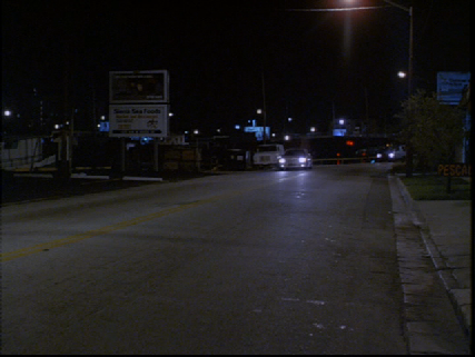 As they turn we see a warehouse on the south side of the street (above). Episode 50 of Burn Notice uses this same warehouse and blew it up.